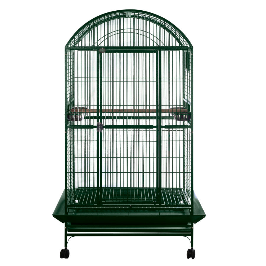 - Includes stainless steel coop-Cups, perches, and removable seed catcher