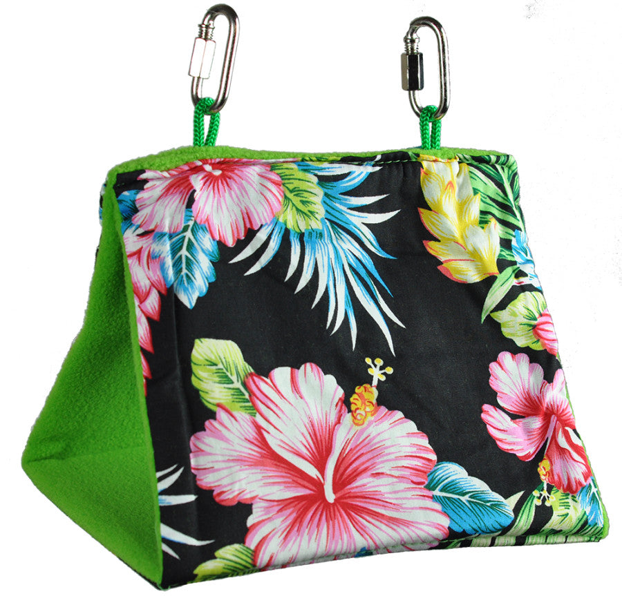 A cozy sleeping tent for your feathered friend that is machine washable and easy to install. Soft fleece sides will give your bird a cozy personal area to call their own. It has a durable plastic insert at bottom and includes two 2.5mm 100% stainless steel quick links for attaching. Comes in 2 sizes.
