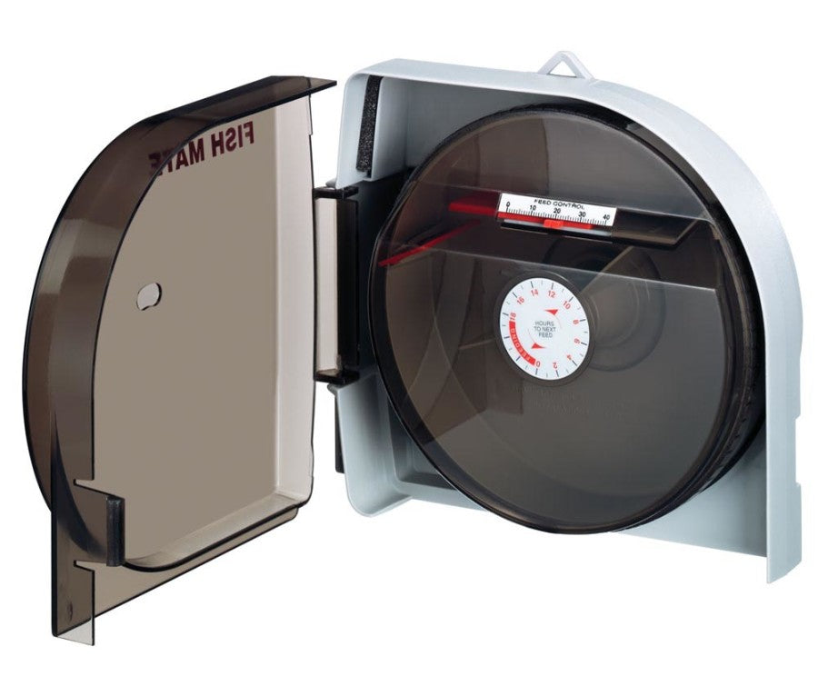This Fish Mate P21 Pond Fish Feeder is ideal for ponds and large aquariums. It will dispense food slowly over a 5 hour period so your fish can eat as they do in the wild, over a period of time. This keeps fish active and reduces the danger of overfeeding. Automatic Daily Feeding; Suitable for all Foods; Adjustable Feed Quantity and Timing; Feeds between 8 meals for large ponds to 40 meals for small aquariums.