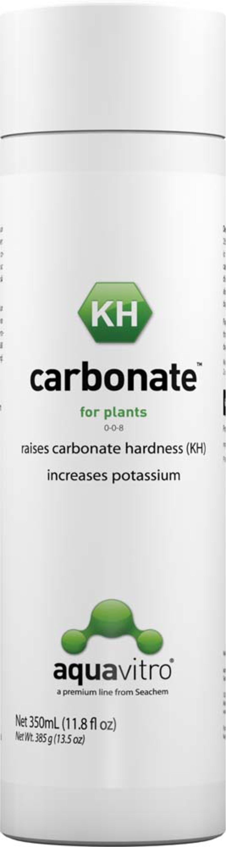 - Use Instructions: Add 30 mL to 60 L (15 US gallons) of water once a week (or as needed). This dose raises carbonate hardness by 1 meq/L (2.8 dKH). For unbuffered water or in the absence of CO2 injection, use ¼ to ½ dose to avoid impacting pH. Plant preferences vary, but a good rule of thumb is about 1-2 meq/L (3-6 dKH). This dose increases potassium by 40 mg/L.
