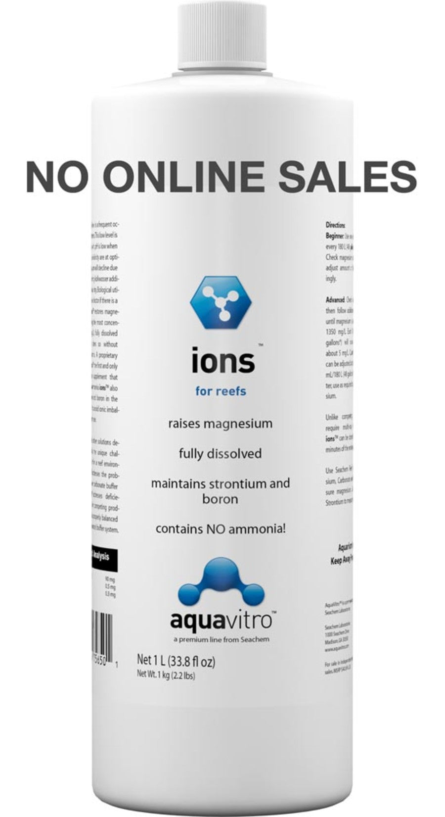 - Use Instructions: Beginner: Use 5 mL for every 90 L (25 US gallons) twice a week. Check magnesium once a week and adjust amount or frequency accordingly. Note: each inner cap thread is approximately 1 mL.Advanced: Check magnesium level, then follow addition regimen above until magnesium is adjusted to 1200-1350 mg/L. Each 5 mL/90 L (25 US gallons) will raise magnesium by about 5 mg/L. Quantity or frequency can be adjusted, but do not exceed 25 mL/90 L (25 US gallons) per day. Thereafter, use as required to maintain magnesium. Unlike competing products that require multi-day interval dosing. ions can be dosed daily and within minutes of the entire aquavitro line.