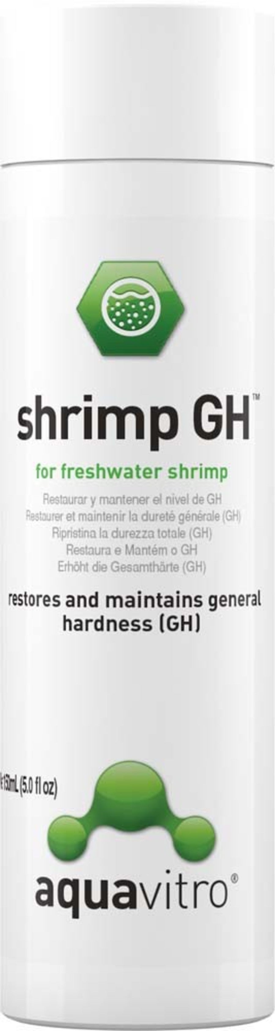 aquavitro¨ shrimp GH adds a complete spectrum of minerals to the shrimp aquarium. It takes into consideration both the mineral requirements of shrimp and the mineral content of their natural waters in order to create an optimal shrimp environment. shrimp GH adds calcium, magnesium, potassium, and iron as well as 6 trace minerals all in the correct biological ratio for shrimp.