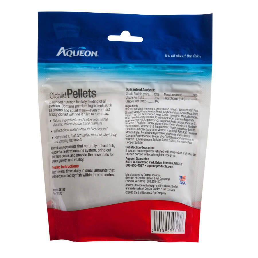 Aqueon Cichlid Pellets are made with premium ingredients, like shrimp meal, squid meal, kelp and spirulina, to attract the most finicky cichlids. Available in two pellet sizes for small to large cichlids. Satisfaction Guarantee.