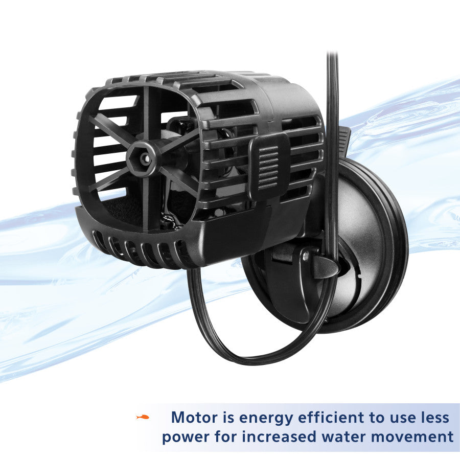 Aqueon Circulation Pumps are designed to simulate natural river and reef currents found in realistic aquatic environments. Each pump includes a robust locking suction cup to minimize vibration, making operation quieter. The ball and socket connection point allows for directional positioning of water flow. The energy-efficient motor uses less power while increasing water movement. The Aqueon Circulation Pumps are available in five sizes for use in freshwater or saltwater aquariums.