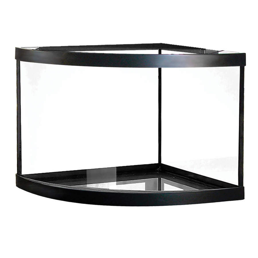 Corner aquariums come with a curved, tempered front glass panel that creates a dramatic viewing area. The black silicone seals add stylish appeal to your fresh or saltwater setup. It is conveniently designed to fit in the corner of a room. Place aquarium on a stand that is able to safely bear the weight of a filled aquarium.
