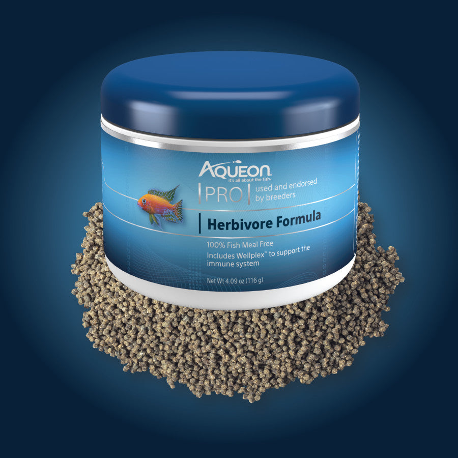 Grouping fish by type and assuming they eat the same food deprives many species of proper nutrition. Aqueon PRO foods take a different approach. Looking at what fish naturally eat is the focus of each new formula. The new Wellplex®, a proprietary blend of macro and micro algae as well as Vitamin C and Vitamin E, supports the fish’s immune system more holistically. Everyone wants their fish to be happy and healthy. Aqueon PRO foods are high quality, formulated with ingredients designed by leading fish nutritionists and focused on the natural diet of the fish. Ideal for those fish whose natural diet is primarily plants and algae, this formula is completely fish meal free. Herbivorous fish have a longer digestive system designed specifically for plant matter. With a variety of quality plants and algae, this formula includes prebiotic ingredients which help with digestive complications that result from lower quality foods. Satisfaction Guarantee.