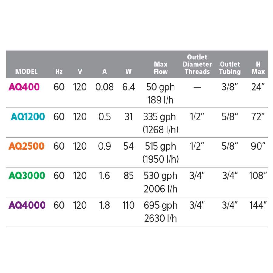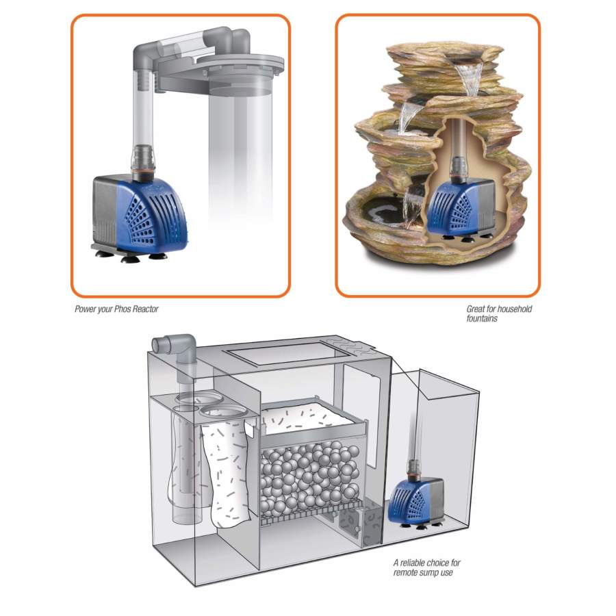 Aqueon Submersible Utility Pumps are silent, versatile, low maintenance and fully submersible. Model AQ1200 has adjustable flow rate up to 335GPH. They are ideal for small fountain and waterfall use. Included with utility pump are secure suction cups to secure pump as well as a 1/2 female pipe thread outlet and 1/2 internal diameter hose connector.