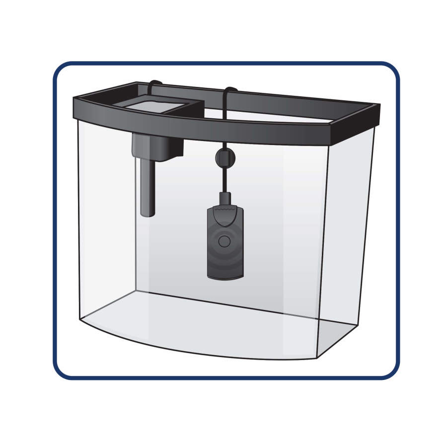 - Vertical or horizontal placement using suction cups that mount to the bottom or side wall of tank