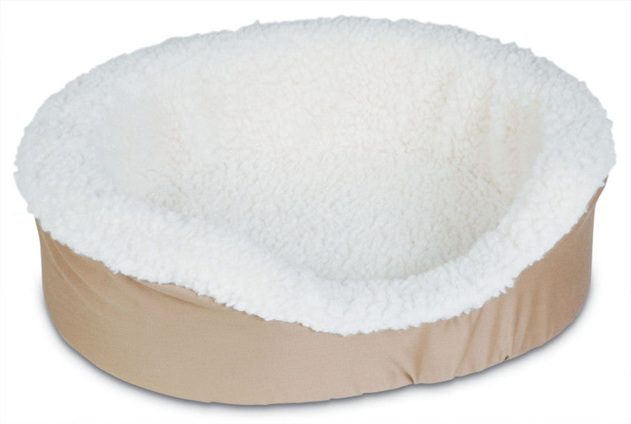 Aspen Pet¨ Plush/Suede Oval Foam Lounger Beds are perfect for furry pets that like to curl up and cuddle in for a heavenly snooze. Your pet will love to snuggle into the raised sides that promote nesting, exposure to drafts and add a warm sense of security. Perfect for furry pets that like to curl up and cuddle in for a heavenly snooze. An orthopedic base and polyurethane foam shell help the bed retain its shape while offering support and comfort. The machine washable, soft plush lining exterior cover unzips making it easy-to-clean, so your pet's sleeping space and helps your home smell fresh. Supple microsuede with contrasting plush sleep surface. Non-skid bottom. Ships in assorted colors that compliment any home decor.