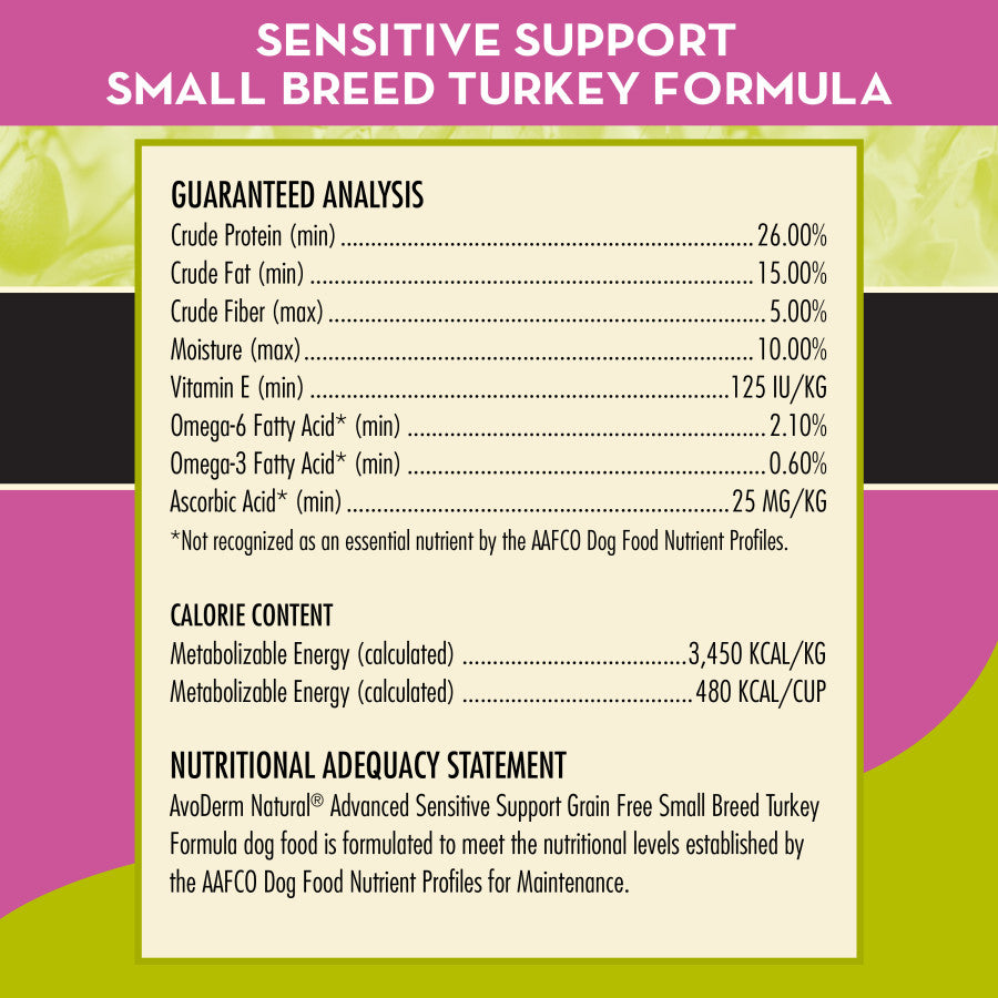 - AvoDerm Advanced Sensitive Support Small Breed Turkey Formula Dry Dog Food, Specifically Developed For Small Breed Dogs with Sensitive Skin or Sensitive Stomach