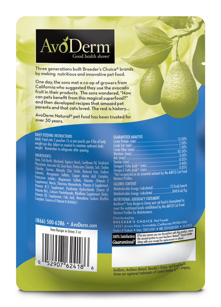 AvoDerm Natural Grain Free Tuna Recipe in Gravy Pouch Wet Cat Food