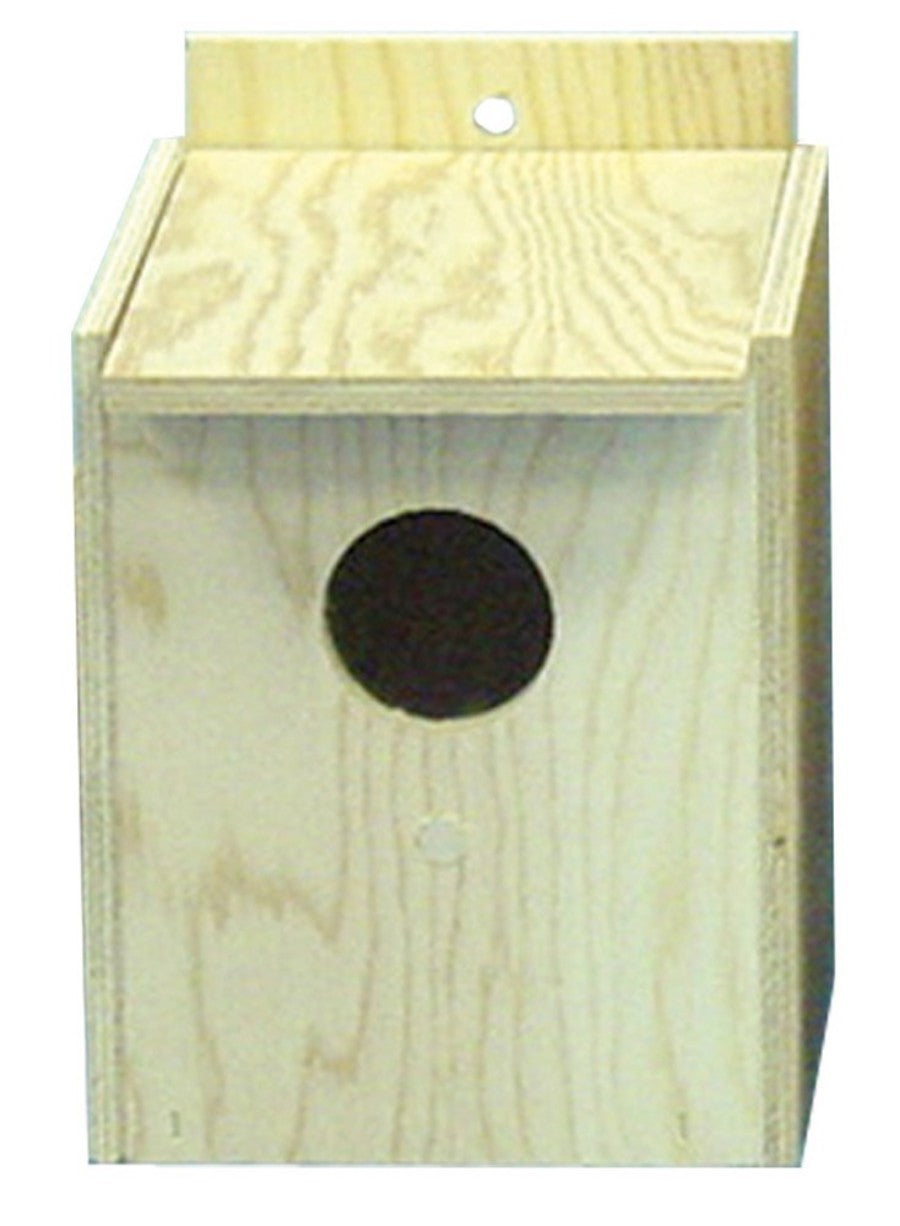 The Bird Brainers nesting box provides an ideal place for Parakeets to hide. Nesting box is made of unfinished plywood material giving it the rustic look. USA made. Perfect for mounting inside the cage.