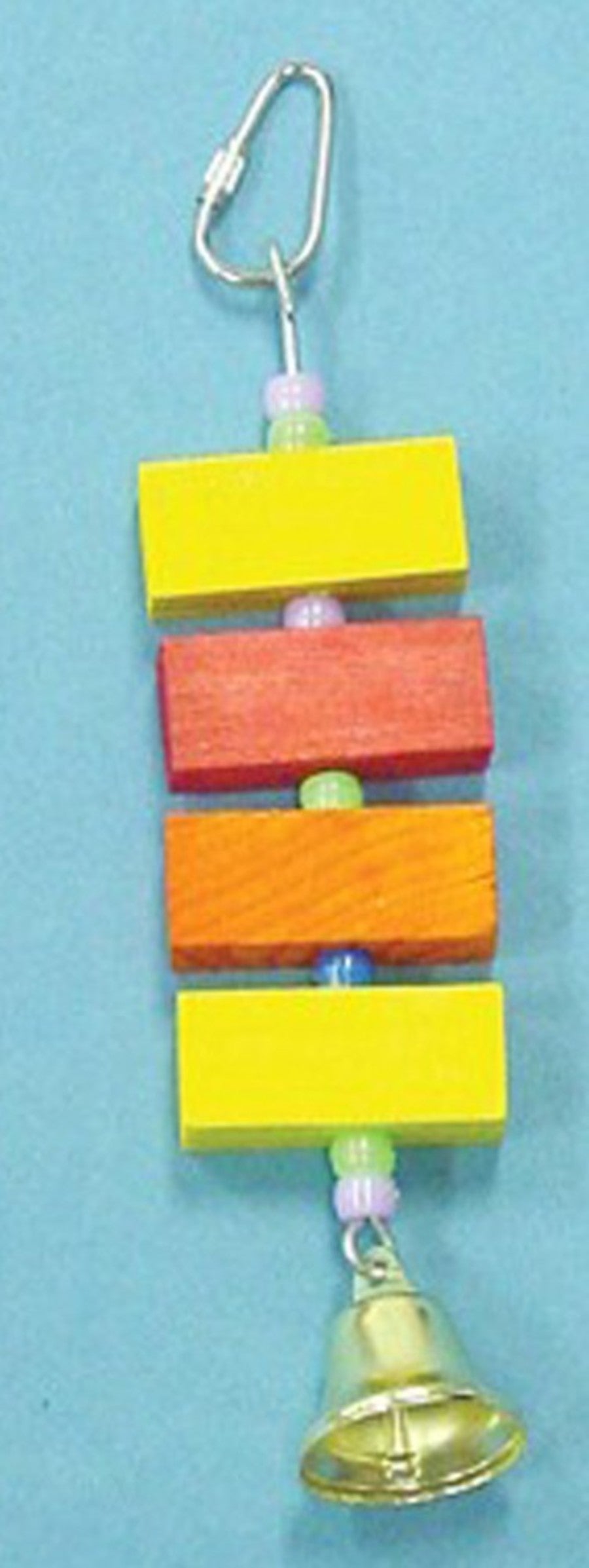 Keep birds entertained with this colorful and fun toy. Good for any size bird. This beaded toy will maintain any birds attention with it colorful plastic beads and wooden blocks as well as a bell for hours of fun. Made in the USA.