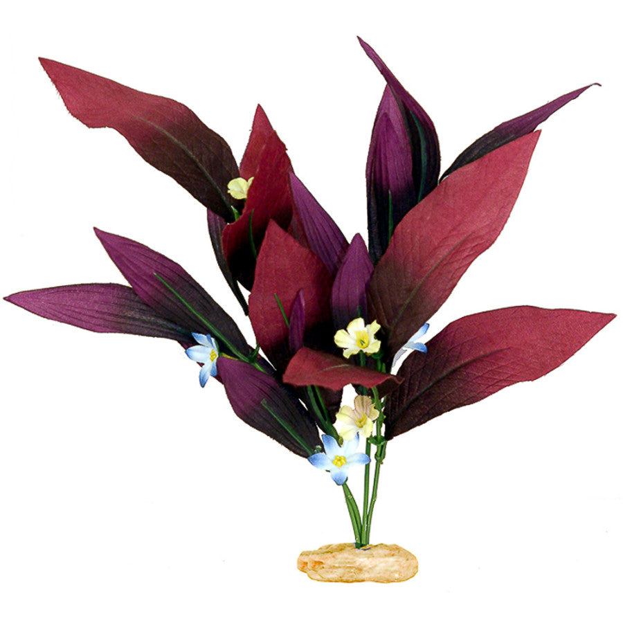 Blue Ribbon ColorBurst Florals African Sword Plant With Flowers 3.5-4 inches. Hand dyed silk-style plants safe for aquariums and terrariums. Full, beautiful floral clusters which sway in the water for a natural look. Weighted resin base with no metal stems