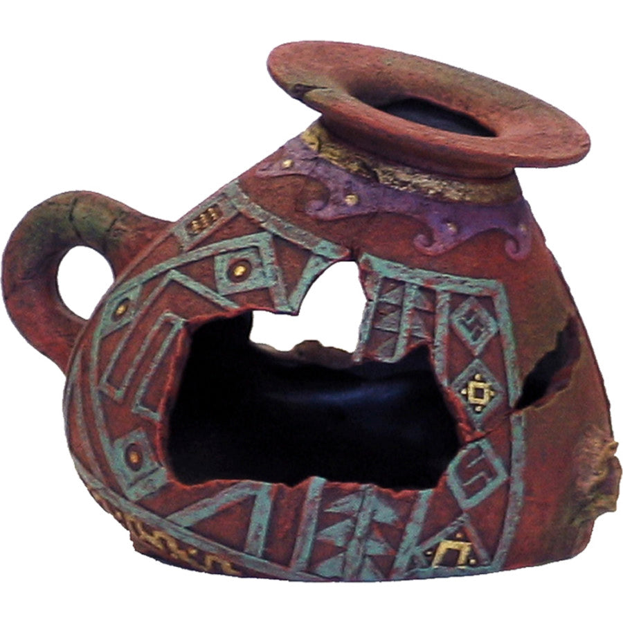 Blue Ribbon Exotic Environments Ancient Vases and Urns Incan 5.75 x 4.75 x 4.25 inches. Ancient vase, hand painted with authentic detail, colors and textures. Safe for use in all freshwater and saltwater aquariums, as well as reptile, snake and turtle terrariums.