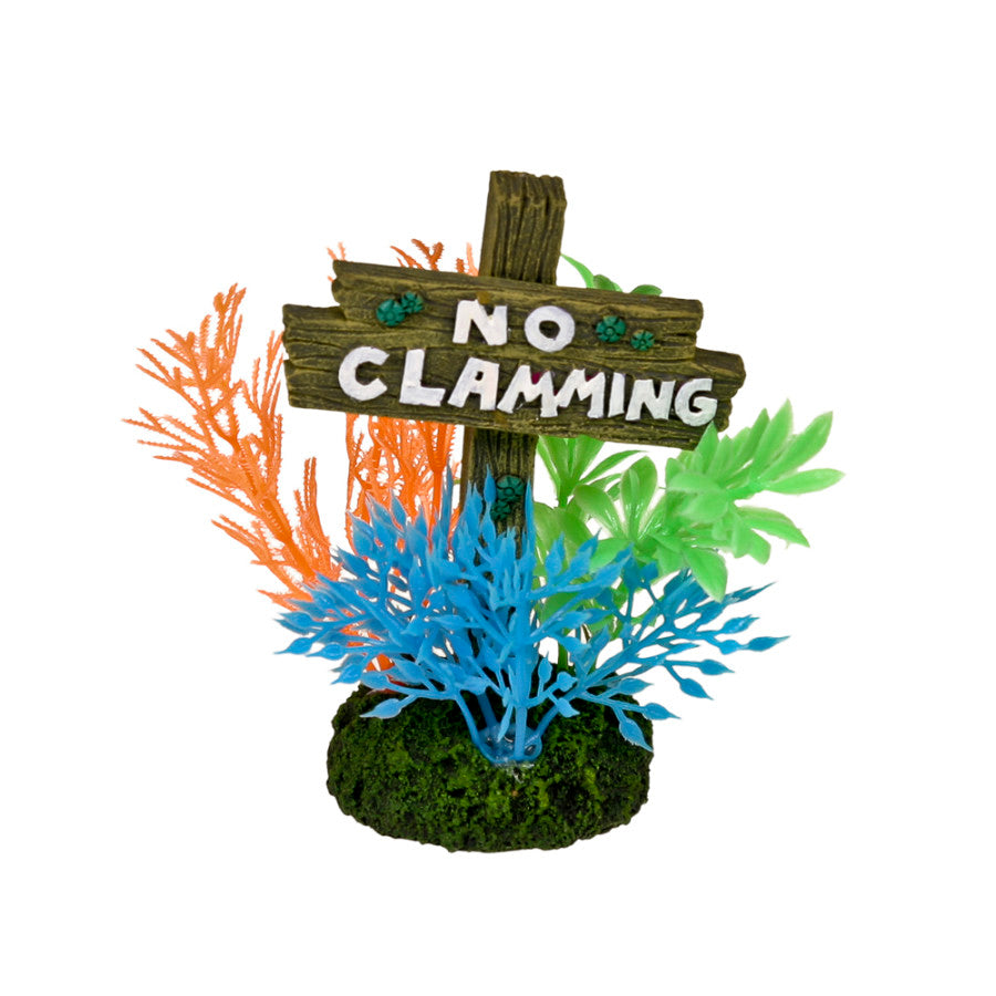 Blue Ribbon Exotic Environments No Clamming Sign Small. Informational signs surrounded with floral stems in many colors, this artful plaque tells it's aquarium inhabitants what's down tank a bit. Skillfully placed with other signs, your tank will have the appearance of a fishy suburb, just add tourists! Safe for fresh or saltwater, and terrariums.