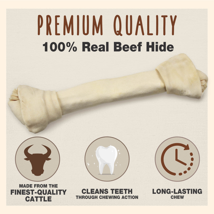 For over 30 years, Cadet has been providing healthy and delicious chews and treats made of responsibly sourced ingredients. Cadet Beef Hide Knotted Chews are premium grade, irresistible chews that dogs crave. Made of 100% real beef hide from the finest-quality cattle, each natural dog bone is a wholesome reward to give your best friend. These long lasting dog chews will keep your dog occupied and help discourage destructive chewing. Plus, they promote healthy teeth and gums by preventing plaque and tartar buildup as dogs chew. Give your Cadet these beef dog chews for enjoyment that lasts!
