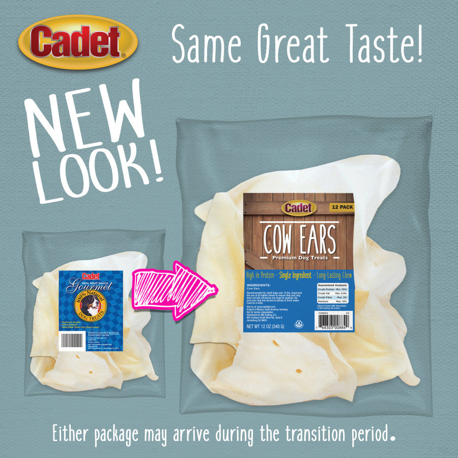 What dog doesn't love beef? Cadet Cow Ears are highly digestible, long lasting dog chews made of 100% real beef that is sourced from the finest quality cattle. Offering dogs a delicious and high protein reward, these single-ingredient cow ear chews are oven roasted to bring out the savory flavor dogs can't resist. Plus, they help clean teeth and gums through mechanical chewing action to support dental health. Keep your Cadet busy and occupied with these satisfying chews for dogs!