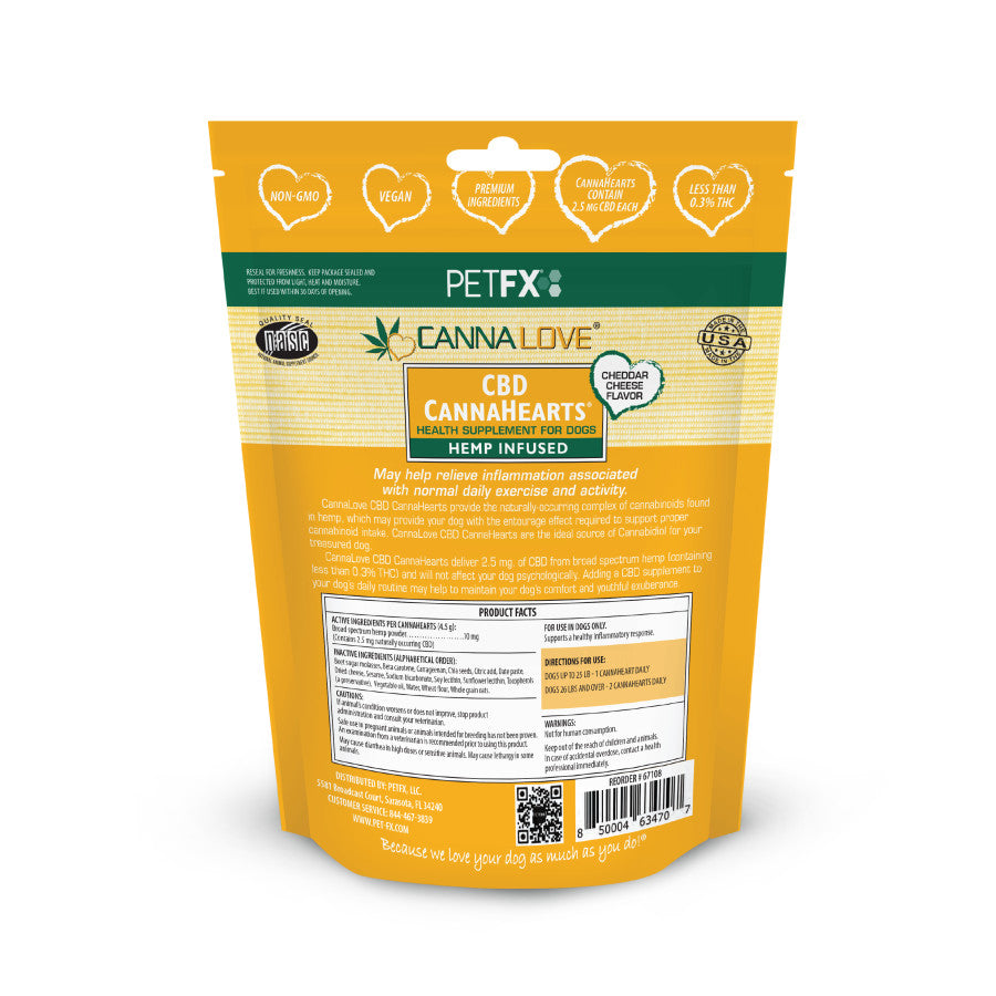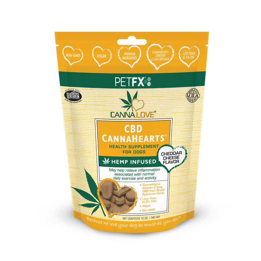 May Help Relieve Inflammation Associated With Normal Daily Exercise And Activity. Cannalove CBD Cannahearts Provide The Naturally-Occurring Complex Of Cannabinoids Found In Hemp, Which May Provide Your Dog With The Entourage Effect Required To Support Proper Cannabinoid Intake. Cannalove CBD Cannahearts Are The Ideal Source Of Cannabidiol For Your Treasured Dog. CannaLove CBD CannaHerts provide the naturally-occuring complex of cannabinoids found in hemp, which may provide your dog with the entourage effect required to support proper cannabinoid intake. CannaLove CBD CannaHearts are the ideal source of Cannabidiol for your treasured dog. CannaLove CBD CannaHearts deliver 2.5mg of CBD from broad spectrum hemp (containing less than 0.3% THC) and will not affect your dog psychologically. Adding a CBD supplement to your dog's daily routine may help to maintain your dog's comfort and youthful exuberance. Cannalove CBD Cannahearts Deliver 2.5 Mg. Of CBD From Broad Spectrum Hemp (Containing Less Than 0.3% Thc) And Will Not Affect Your Dog Psychologically. Adding A CBD Supplement To Your Dog’S Daily Routine May Help To Maintain Your Dog’s Comfort And Youthful Exuberance.