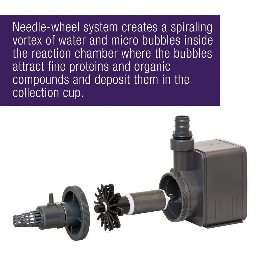 - Bubble production diffuser to prevent the flow of micro-bubbles into main aquarium