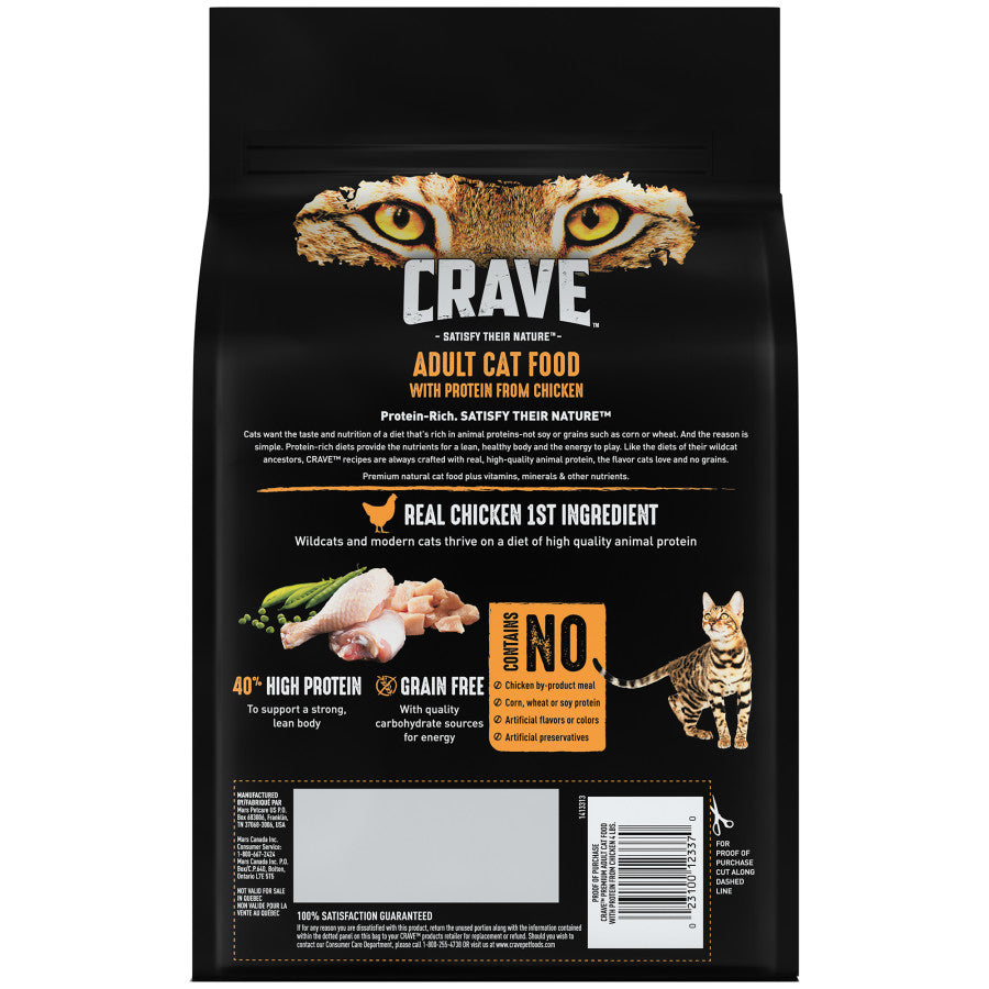 - Contains one (1) 4 lb. bag of CRAVE Grain Free Adult Dry Cat Food with Protein from Chicken
