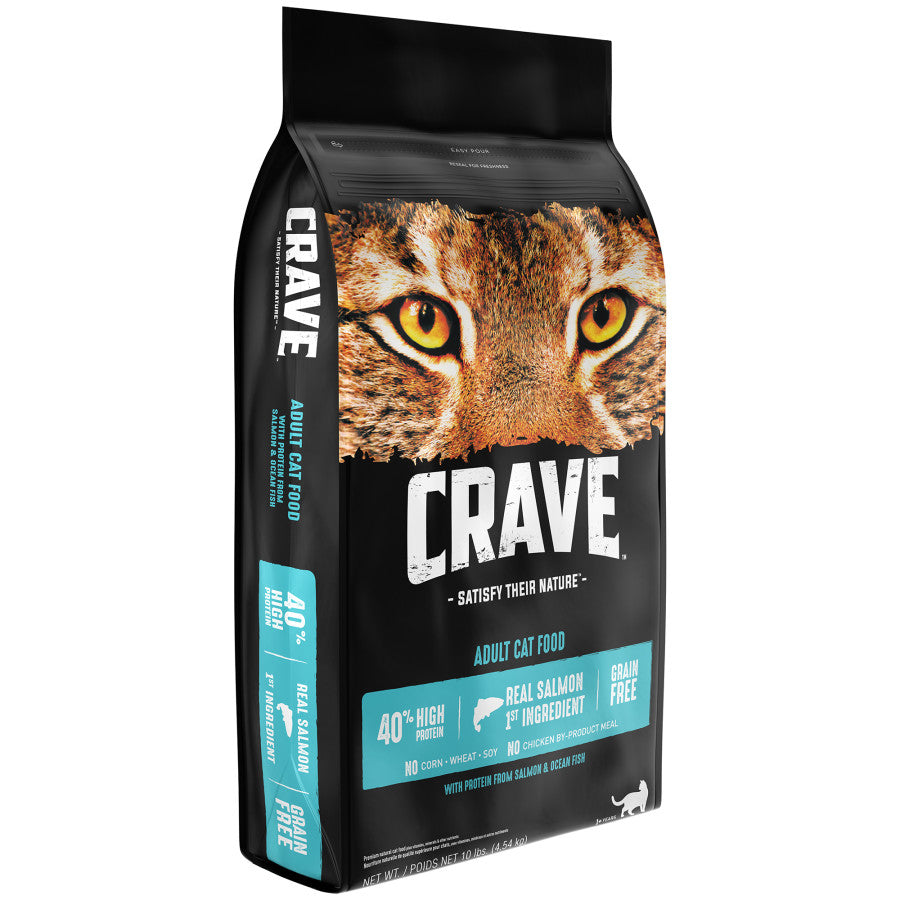 - Ships (1) 10 lb. bag of CRAVE Adult Dry Cat Food with Protein from Salmon & Ocean Fish