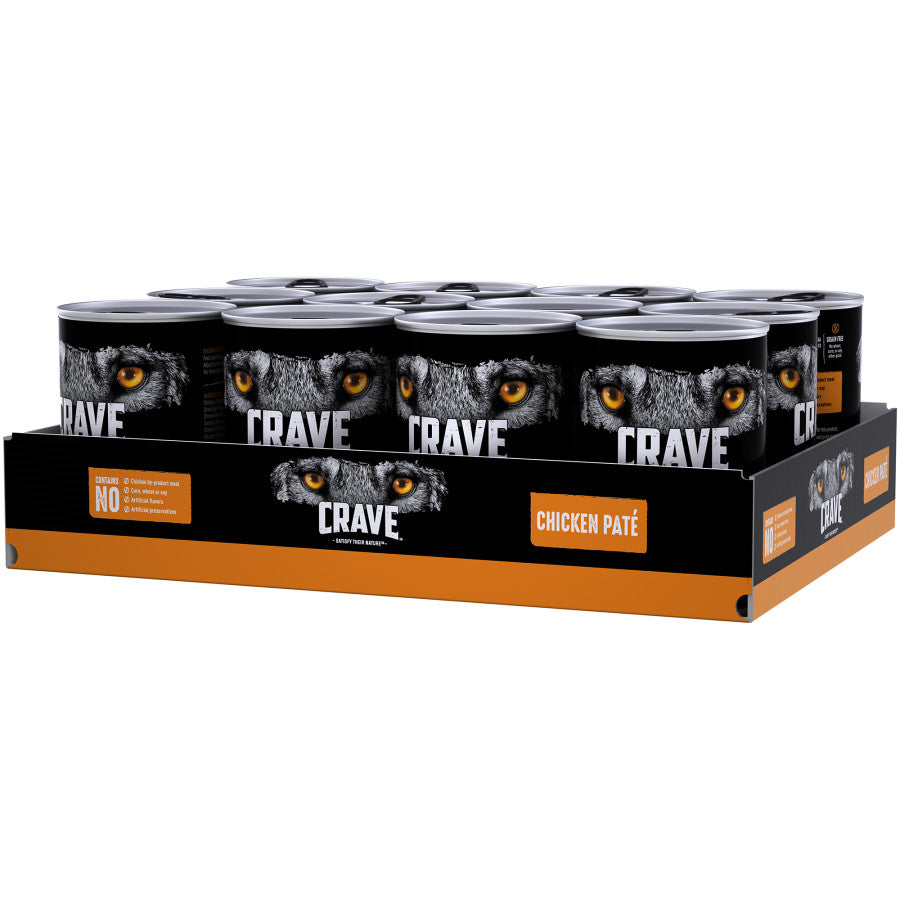 - Contains twelve (12) 12.5 oz. cans of CRAVE Grain Free Adult Canned Natural Wet Dog Chicken Paté, for any size dog
