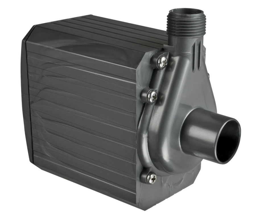 Energy efficient magnetic drive pump produces 1200GPH flow. Can be used inline or submersed. 13.5 ft max pumping height, 10 ft power cord.