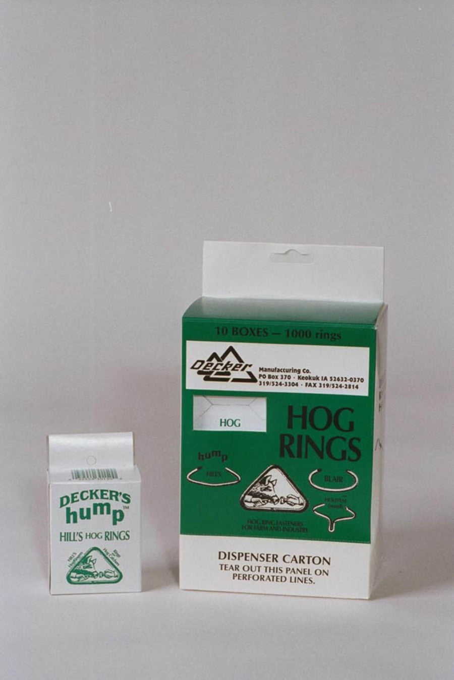 Decker Hump Hill's rings-pig shoat and hog sizes are make with a slight bend or hump in the center so they close easily. Close with the R2.