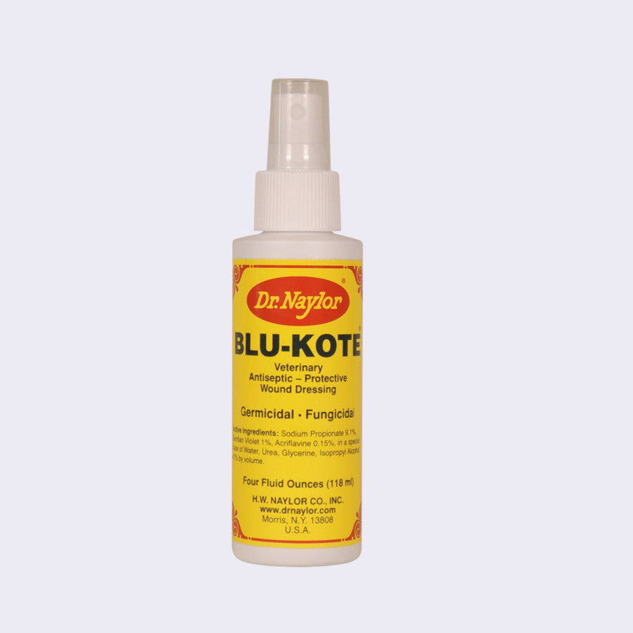 Effective treatment of surface wounds abrasions and ringworm. Antiseptic fast-drying Blu-Kote is highly effective against pus-producing bacteria and common fungus infections.