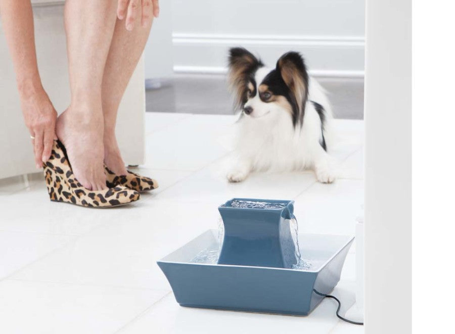 The Drinkwell Ceramic Pagoda Fountain continuously circulates and filters your pet's water, keeping it cleaner and fresher than a normal water bowl. The Pagoda Fountain offers 70 ounces of fresh, filtered water and the porcelain design is easy to clean and looks great in the home. The dual patented free-falling streams aerate the water for freshness and encourage pets to drink more water, providing the best hydration solution for your pet!