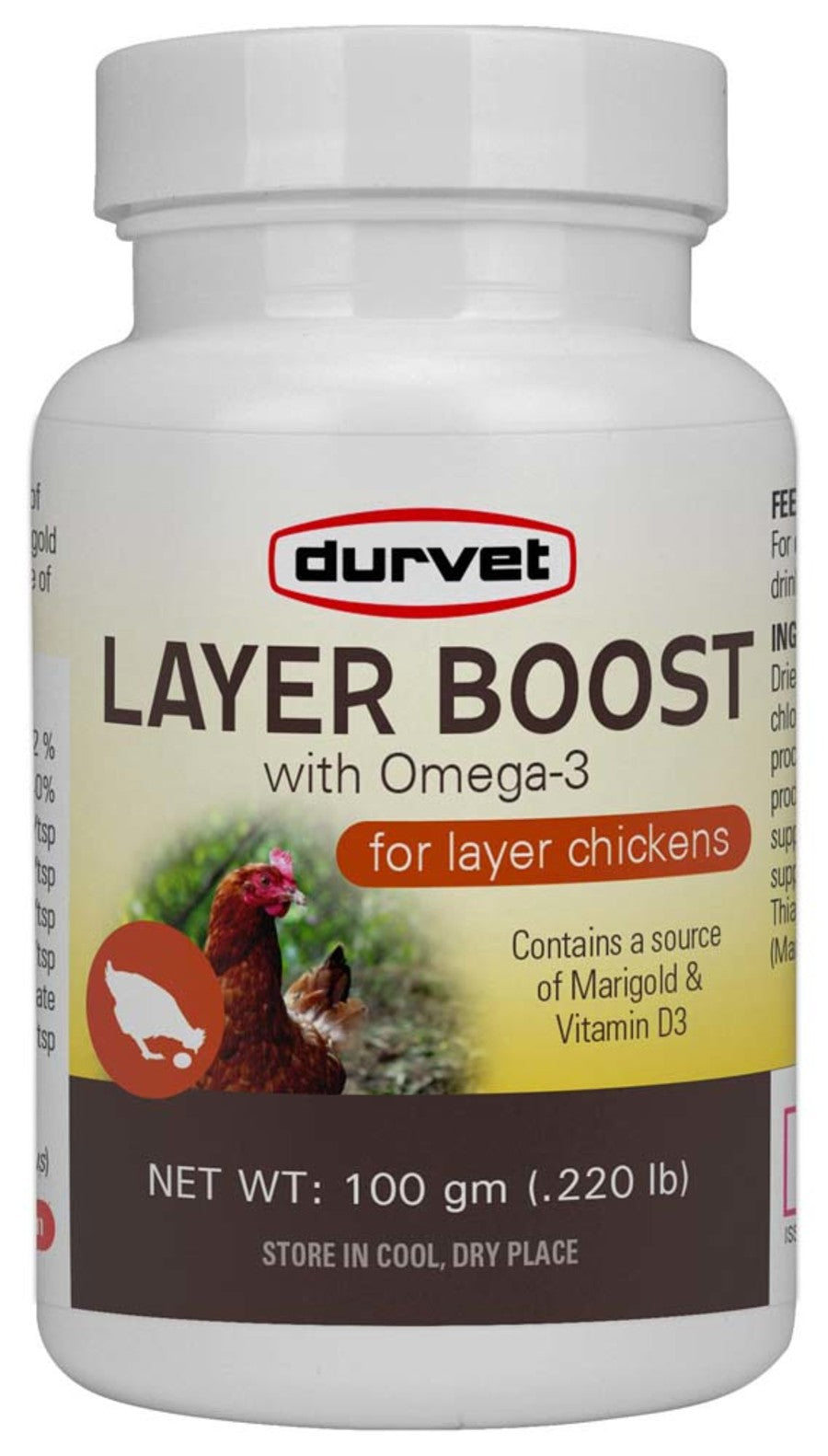 - Recommended For: Layer Boost contains a blend of vitamins; electrolytes; enzyme; omega 3; and tagetes (Aztec Marigold) for daily use with layer chickens. Contains a source of live (viable) direct fed microorganisms.