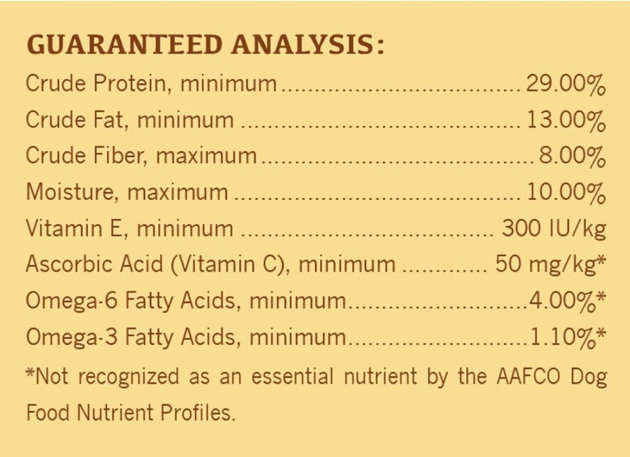 - Safety Listing: Formulated to meet the nutritional levels established by the AAFCO Dog Food Nutrient Profiles