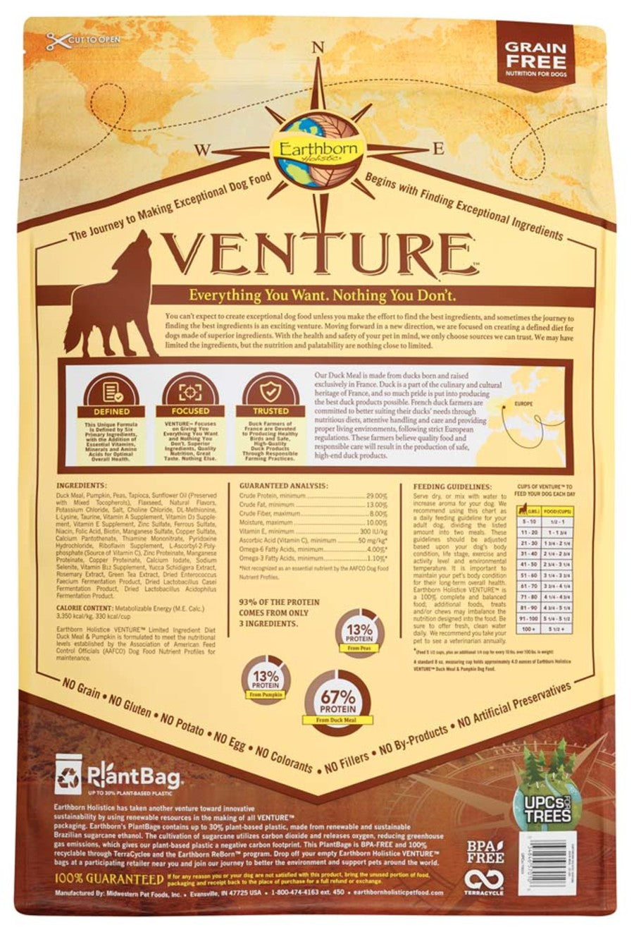 Midwestern Pet Foods Presents Earthborn Holistic Venture, Six New Limited Ingredient Grain-Free Diets for Adult Dogs. Ingredients ma be Limited, but the Nutrition and Palatability are nothing close to limited. We Ventured the World to Find the best ingredients, resulting in Superior Nutrition for your dog.
