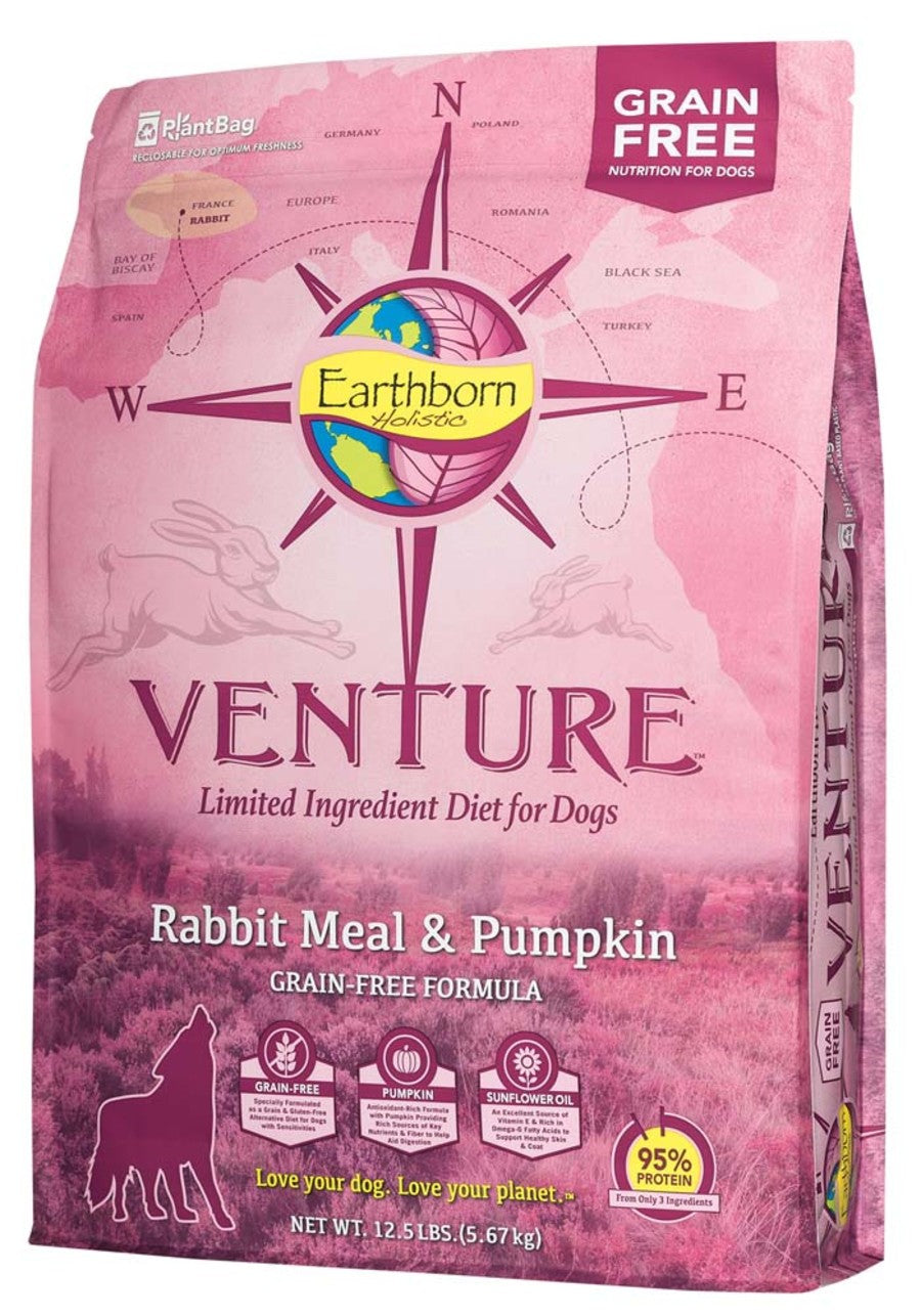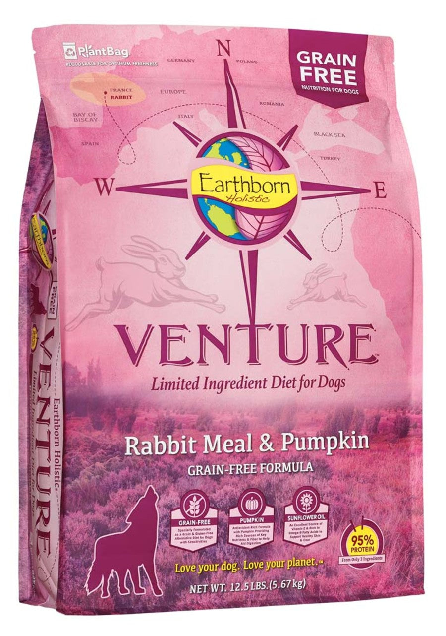 Earthborn Holistic® Venture Rabbit Meal & Pumpkin is a delectable, grain-free, limited ingredient diet for your dog. Our rabbit meal comes from rabbits born and raised exclusively in the Pays de la Loire, Nouvelle-Aquitaine and Brittany regions of France. It is with pride and passion that rabbit farmers ensure they meet the rabbits' needs on a daily basis. They are committed to feeding 100% vegetable diets, giving attentive care and providing proper shelter environments, following strict European regulations. These farmers believe quality animal feed and responsible care results in the production of safer, high-end rabbit products. Carefully selected, vine-ripened pumpkins from California's lush Central Valley are also included in this defined diet. Pumpkin is an excellent source of high-quality fiber to help regulate the digestive system and to help maintain a healthy immune system.
