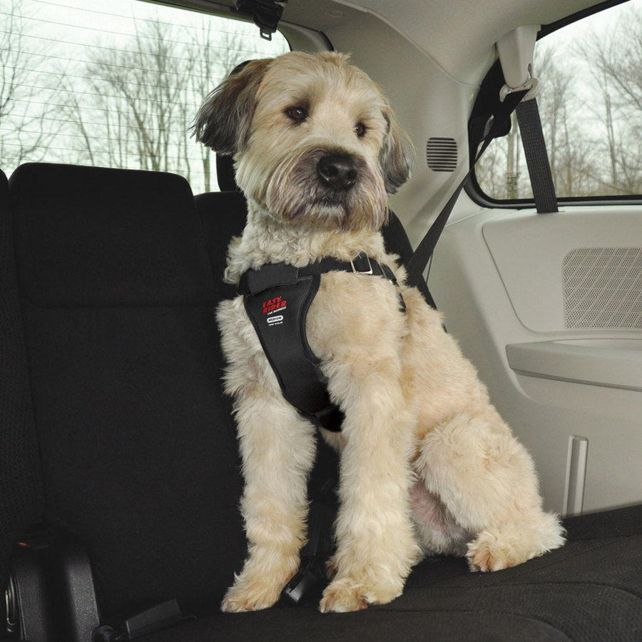 Fit, walk, buckle, ride! Our safety crash-tested Easy Rider Adjustable Dog Car Harness keeps dogs safe while traveling in the car and can also be used as a walking harness. Available in five sizes to fit most dogs. This car harness features metal hardware at stress points and has passed independent safety crash testing in accordance with the FMVSS 213 for child restraint systems.