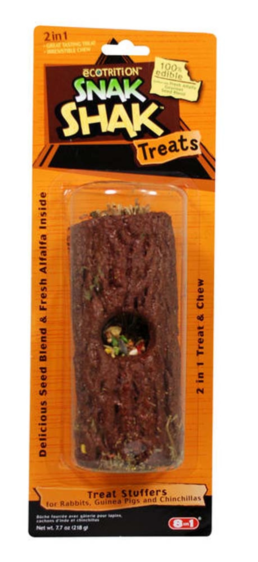 First-of-it's-kind, 100% chewable Snak Shak log stuffed with fresh alfalfa and irresistible seed blends. 2in1 chew and treat-provides hours of stimulation.