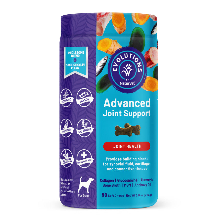 NaturVet Evolutions Advanced Joint Support offers total joint support with complete joint health ingredients and added Bone Broth, Collagen, and Turmeric. Evolutions soft chews feature wholesome blends of advanced formulas and nutrient rich ingredients.
