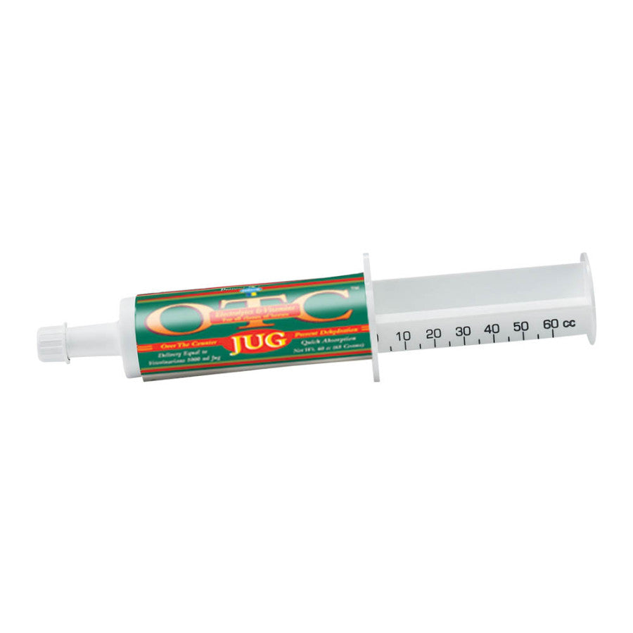 Your horse relies on you to provide him with what he needs when he needs it. For example, after a challenging workout or competition, your horse loses vital minerals and could use additional support. OTC JUG helps maintain hydration by replenishing vitamins, minerals, amino acids, and electrolytes for horses lost during excessive exercise or heat. OTC JUG can also be used pre-or post-workout to maintain hydration since it absorbs quickly. OTC JUG is an electrolyte paste for horses with a formula delivery comparable to a veterinarian's 100 ml. electrolyte/vitamin jug. It contains a full complement of amino acids, vitamins, and minerals and is absorbed quickly by the horse.