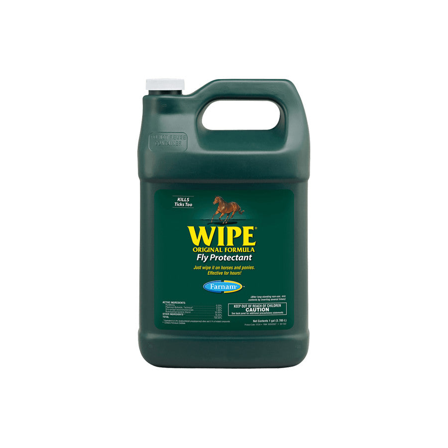 - Use Instructions: It is a violation of Federal law to use this product in a manner inconsistent with its labeling. Do not use on horses or foals intended for slaughter. Wash hands with soap and water promptly after use. SHAKE WELL BEFORE USING: Before applying Wipe® Original Formula Fly Protectant to your horse, brush him down thoroughly to remove loose dust and dirt. Moisten, but do not soak, a folded piece of Turkish toweling (approximately 12” x 15”) or an applicator mitt with Wipe® Original Formula Fly Protectant. Rub briskly against the growth direction of the hair. Give special attention to the shanks, legs, shoulders, neck and facial areas of the horse where flies tend to cause the greatest problems. Add more Wipe® Original Formula Fly Protectant to the applicator as needed, applying approximately one to two ounces for the total application on a daily basis (the variance will depend on the size of the horse). Groom with a brush. To kill attached ticks, dab Wipe® Original Formula Fly Protectant directly on the tick with a saturated cloth. Do not apply over cuts, wounds, or irritated skin. Do not apply near eyes and mouth. Apply sparingly around ears.