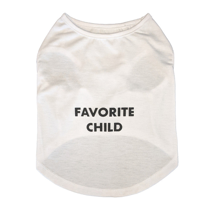 Cosmo Favorite Child Tee. Your floof will make a statement with this tee! Easy on/off design. 90% polyester and 10% cotton, machine washable/air dry.
