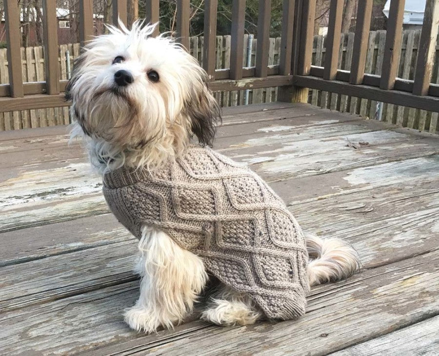 Classic fisherman sweater designed with cable knit pattern and leash opening. This sweater is soft and thick, will keep your pet warm and cozy during the winter months.