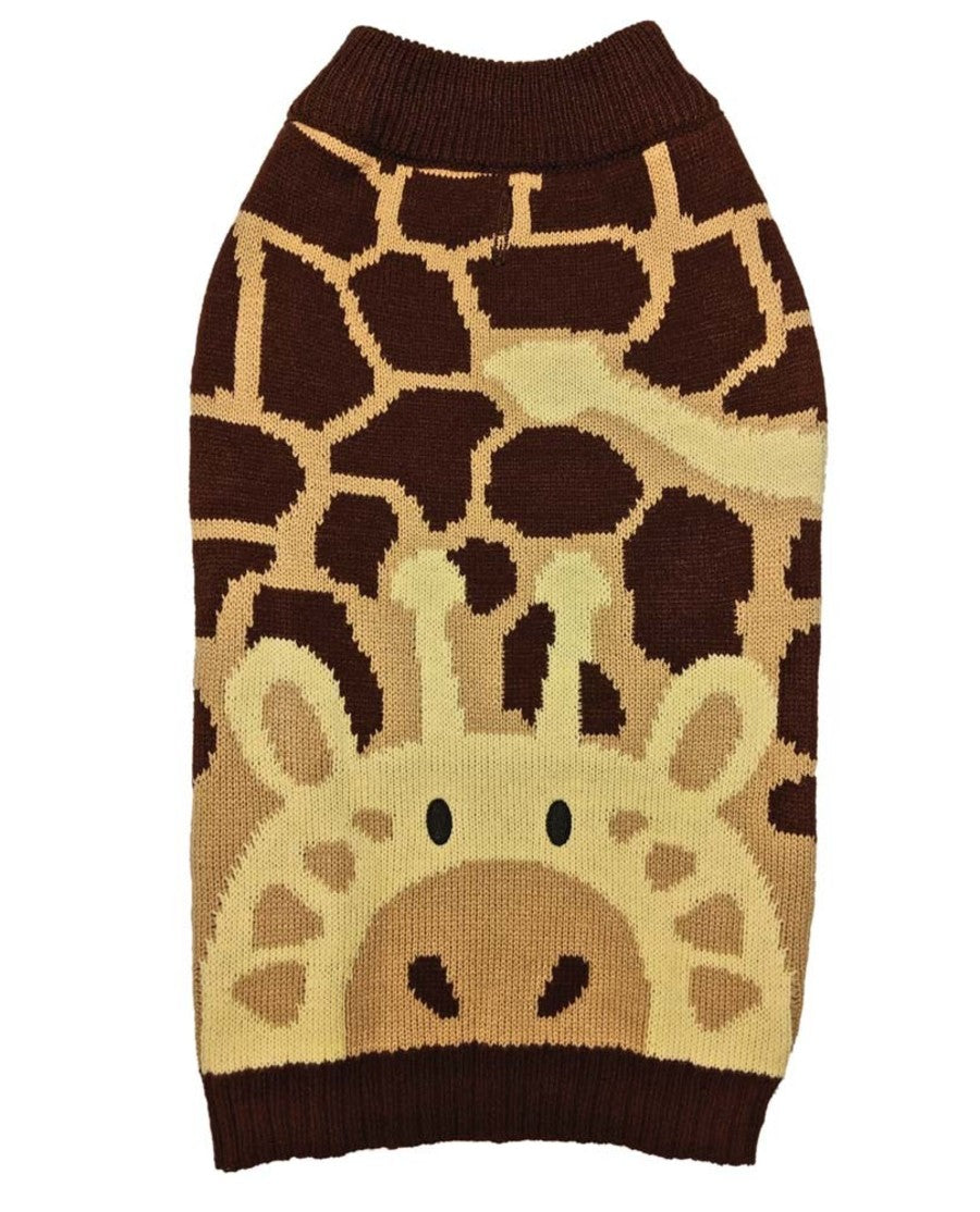 Trendy animal motif features adorable giraffe face with wrap around tail. Mock neck turtleneck and leash hole.