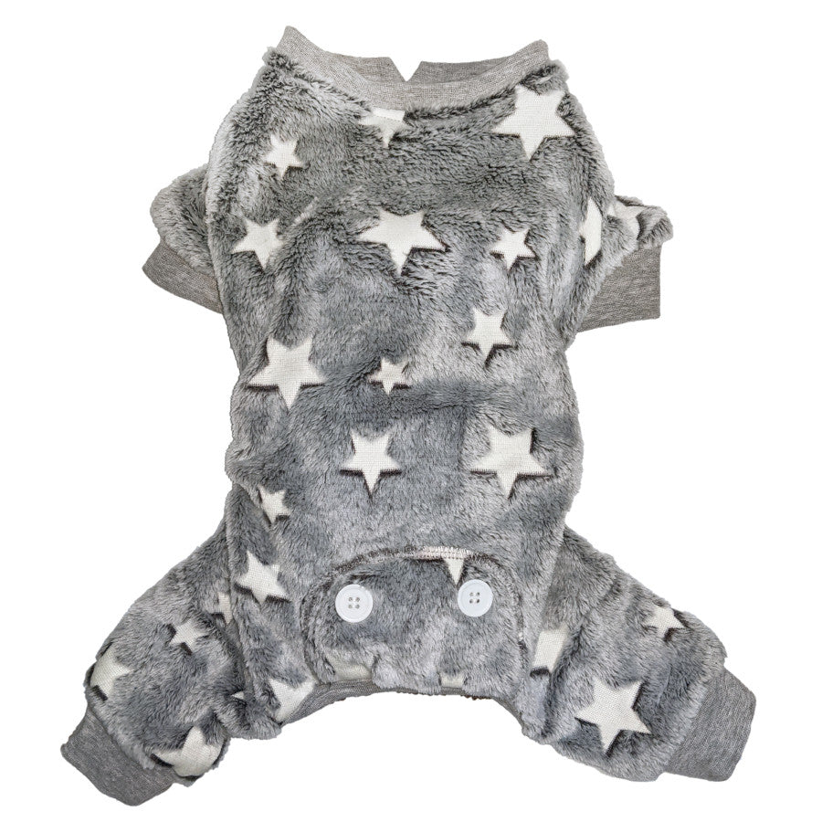 Snuggle up in these cozy fleece iglow in dark pajamas . Faux back flap with button detail.