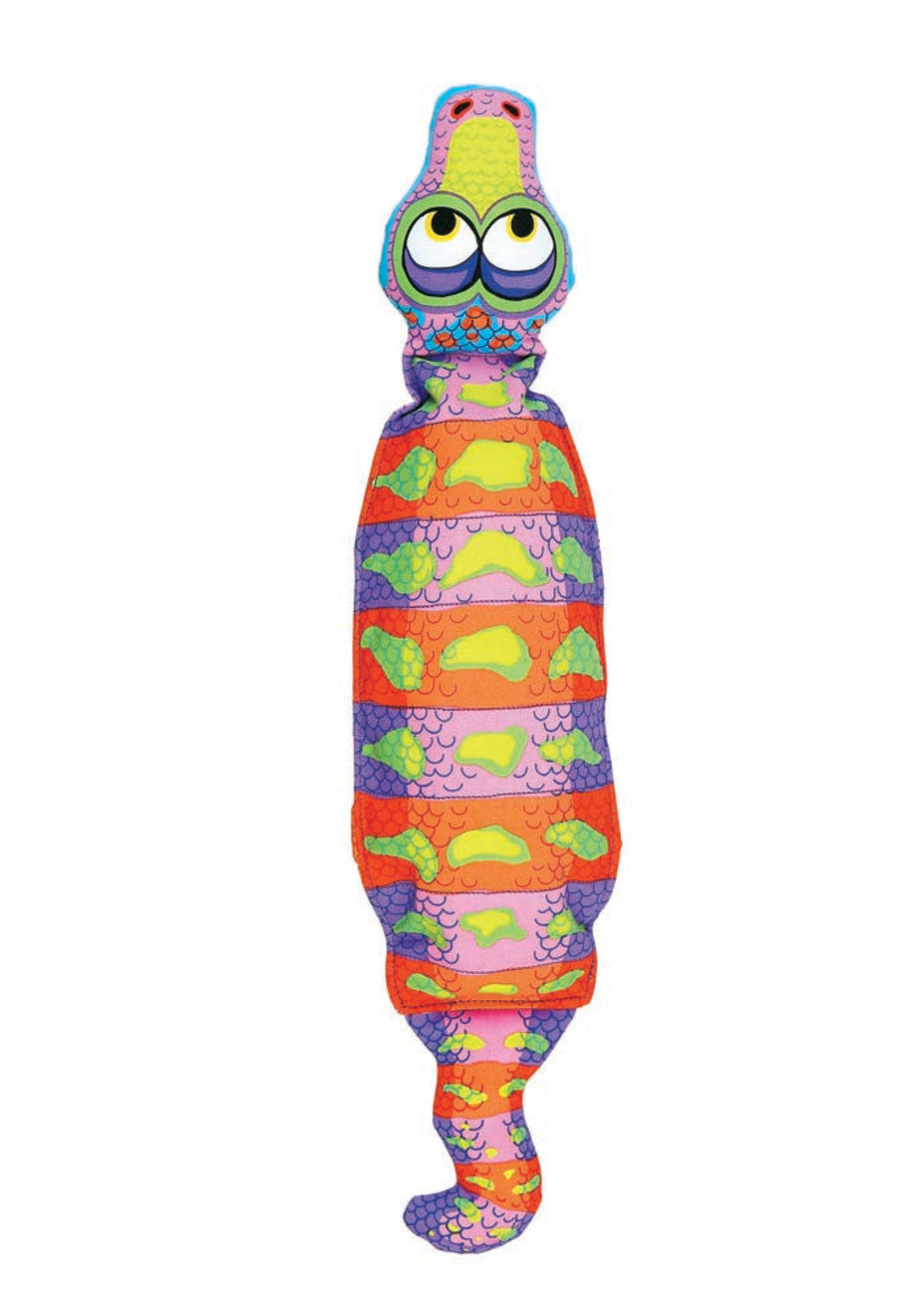Dogs just can't resist the satisfying crunch of an empty water bottle! That's why we've designed FAT CAT® Water Bottle Crunchers. Perfectly sized for empty water bottles (or any empty plastic bottle up to 20 oz in size!) This toy packs a punch with a crunch. Made of heavy-duty canvas construction for durability. It's refillable! Use your old empties to fill this toy at the handy-dandy opening. Available characters include the Snake or Caterpillar in the Classic size and the Chicken or Rabbit in the Mini size!