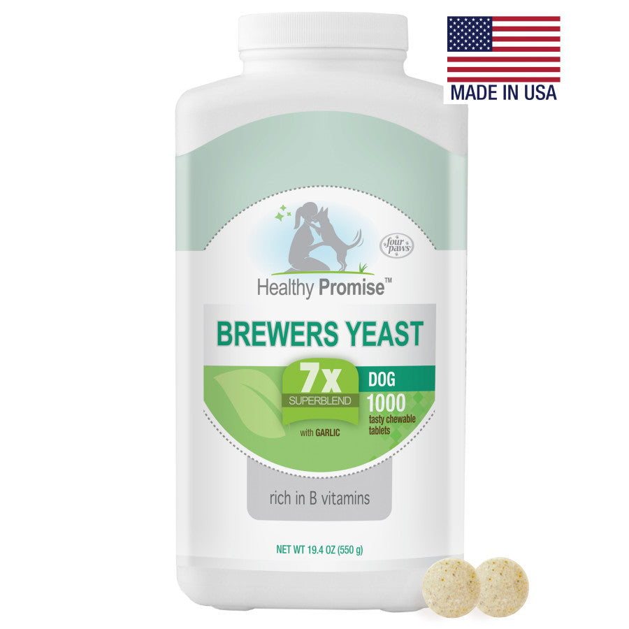 Four Paws has been helping pet parents and four-legged family members flourish together for 50 years. Driven by the passion to keep our furry best friends thriving happily, Healthy Promise supplements and healing & care products help provide our pets a healthy, active, and fulfilling life. Brewers Yeast tablets for dogs are created to help support daily health. This improved dog brewers yeast formula features a 7x SuperBlend that’s rich in B vitamins and provide antioxidants including Manganese, Thiamine, and Riboflavin. These brewers yeast supplements for dogs proudly carry the National Animal Supplement Council (NASC) Seal, which is earned for complying with stringent quality control standards and much more. Add Healthy Promise USA-made pet supplements to your furry friend’s daily routine!