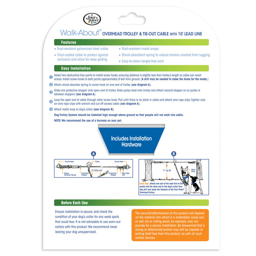 Don't let your fur kid feel cooped up! Let your dog safely roam outside with the Four Paws Heavy Duty Dog Tie Out Cable! This silver tie out cable for large dogs allows your fur kid to sniff around, exercise, and explore outdoors while staying safe and contained. This extra-tough tie out for large dogs is made from the same rust-proof cables used in aircrafts and has a smooth vinyl coating. It also features durable bronze closures that swivel to accommodate your dog's movement. A big dog cable perfect for large backyards and dogs more than 50 pounds.