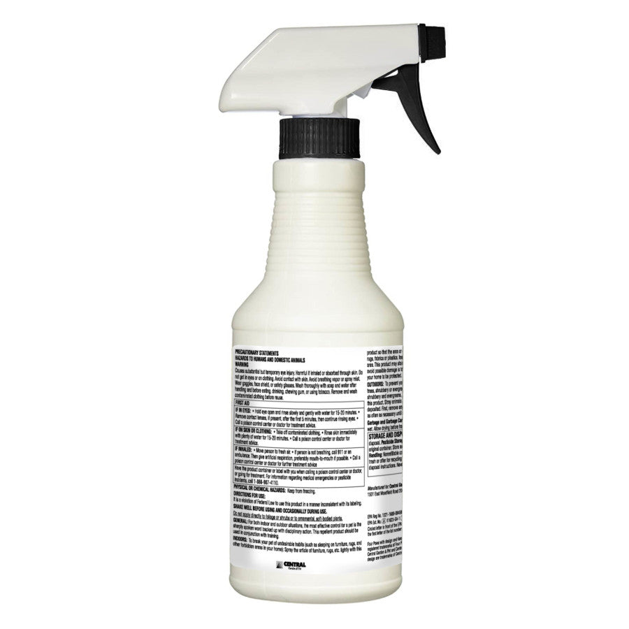 - Use Instructions: It is in violation of Federal Law to use this produt in a manner inconsistent with its labeling.SHAKE WELL BEFORE USING AND OCCASIONALLY DURING USE.Do not apply directly to follage or shrubs or to ornamental, soft-bodied plants.GENERAL: for both indoor and outdoor situations, the most effective control for a pet is the sharply spoken work backed up with disciplinary action. This repellent product should be used in conjunction with training. INDOORS: To break your pet undesirable habits (such as sleepong on furniture, rugs, and other forbidden area in your home): Spray the article on furniture, rugs, etc. lightly with this product so that the area or object is slightly moistned. Before spraying extensive area of rugs, fabrics or plastics, test the effect of this product by first treating a small inconspicuous area. This product may stain or soften some some fabrics or plasics. An alternative method to avoid possible damage is to spray a piece of cloth lightly and place it on the object or area in your home to be protected. Repeat daily, or as necessary, until undesirable habit is broken.OUTDOORS: To prevent your pet, or stray animals, from soiling flower beds, areas of lawn, trees, shrubbery and evergreens, patches of lawn, etc., lightly every day, or every other day with this product. Stray animals are frequently attracted to areas where urine or feces have been deposited. First, remove any droppings, then spray the spot with this masking odor. Re-apply as often as necessary until undesirable habits of your pet or stray animals are changed. Garbage and Garbage Cans: Treat bags of garbage and garbage cans on all surfaces until wet. Allow drying before handling. Re-apply as necessary.