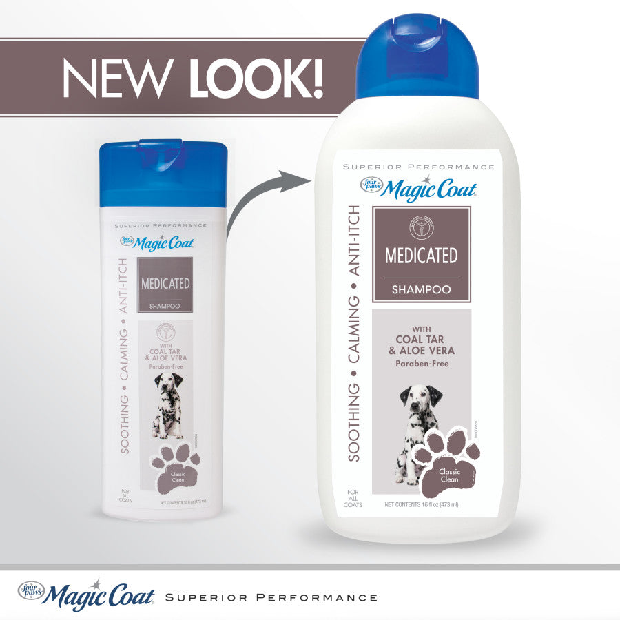 Four Paws has been innovating solutions that help pet parents provide their fur friends loving care for 50 years. Magic Coat Medicated Dog Shampoo is specially formulated to relieve irritated, inflamed, itchy, or dry dog skin while giving your pet's coat a soothing scent. Made with coal tar and aloe vera, this paraben free dog shampoo helps break down flaky and crusty skin while reducing itching. Whether your best friend suffers from dermatitis, eczema, or another skin disorder, our veterinarian-approved soothing dog shampoo provides the ideal blend of ingredients to leave them feeling healthy and refreshed!