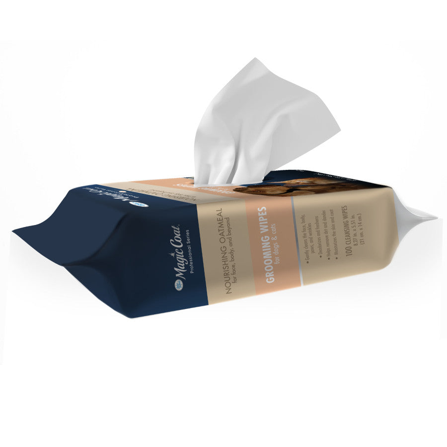 Simplify your pet's grooming routine with Magic Coat Professional Series Nourishing Oatmeal Cat and Dog Grooming Wipes! Enriched with oatmeal, the pet wipes gently clean and moisturize the skin and coat, with no residue and no rinsing required. Formulated with the finest-quality ingredients, these fresh peach-scented grooming wipes are free of phthalates, soap, alcohol, parabens, sulfates, silicone, latex, and chlorine. These cat and dog wipes are perfect for after walks, in-between baths, and are safe to use on any coat type—daily!